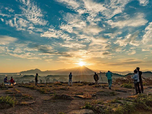 One of the most famous castle ruins in the San’in region. This place offers a magnificent view of the sun rising from behind the summit of Mt. Daisen, known as “Diamond Daisen,” that can be seen twice a year.