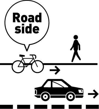 In the Road Traffic Act of Japan, bicycles are categorized as “light road vehicles.” Accordingly, they must be ridden on roadways as a rule, and the use of sidewalks must be limited to exceptional cases. Bikes must be ridden on the left side of the road, along the edge of the roadway. Riding on sidewalks is permitted in exceptional cases, such as when indicated to do so by a road sign or marking, or when unavoidable given the road or traffic conditions. Even in such cases, however, cyclists must ride along the side adjacent to the roadway at a speed that would allow them to stop immediately whenever they need to, and the right-of-way must be yielded to pedestrians on sidewalks.