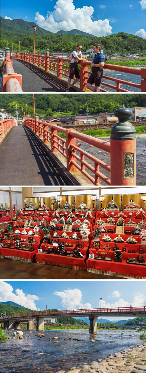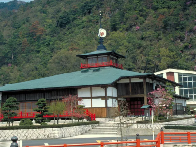 A large wooden building designed after Kinkakuji Temple in Kyoto, showcasing a permanent collection of 1,000 hina dolls.