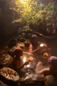 สถานที่แช่ออนเซ็นที่อยู่บริเวณตลิ่งทะเลสาบโทโก ท่านสามารถชื่นชมความงามของทะ...
